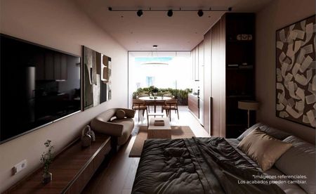 Departamentos tipo loft desde 38 m2 a 95 m2. Este departamento, 504 consta de 38 m2 . 1 recámara, 1 baño, estancia/comedor, cocineta, área de lavado. 1 estacionamiento. Acabados de lujo: Mármol en baños y cocina, pisos de madera de ingeniería, barras de granito