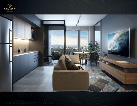 Este departamento, 2003 consta de 39 m2 habitables y un balcón de 6 m2. 1 recámara, 1 baño, sala/comedor, cocina abierta, área de lavado y terraza.