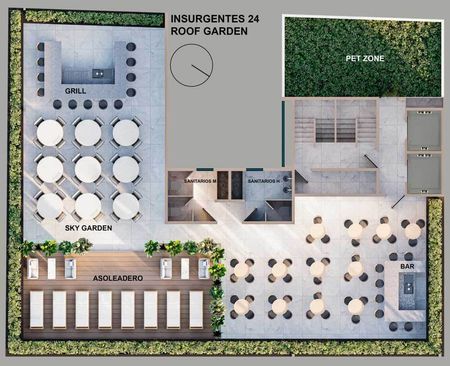 Amenidades: Area de co-working, gimnasio, zona de delivery, zona de asoleadero, Pet zone, Sky lounge con salas lounge y grill.