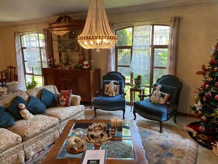 Consta de 4 recámaras, la principal con una terraza que accede al jardín. 4 baños, estancia/comedor con vista hacia una parte frontal del jardín, antecomedor, family room, clósets de blancos, cocina integral con despensa y cava, desayunador, despacho, 2 chimeneas con su tiro independiente, una en la sala y la otra en el despacho. Calefacción eléctrica en área social y recámaras.